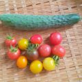ミニトマト、甘とう美人、キュウリ。